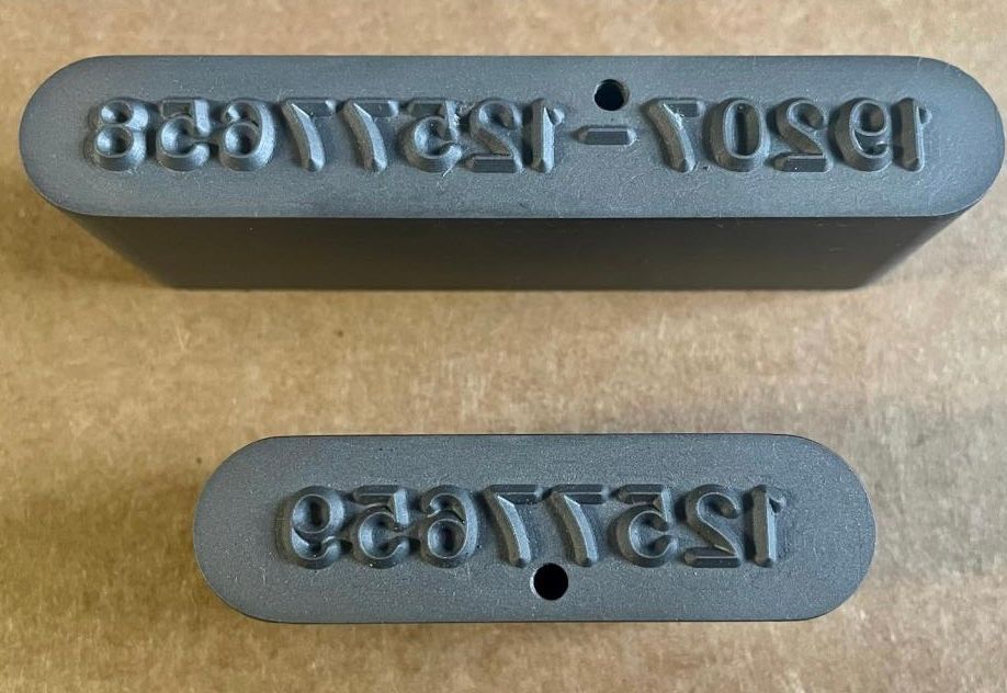 Our stamps can be used for auto parts as well, adding identifying numbers and logos as necessary. Contact us to place an order.